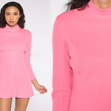 Mod Micro Mini Dress 60s Pink Shift Dress Mock Neck Shop Exile Tucson Az